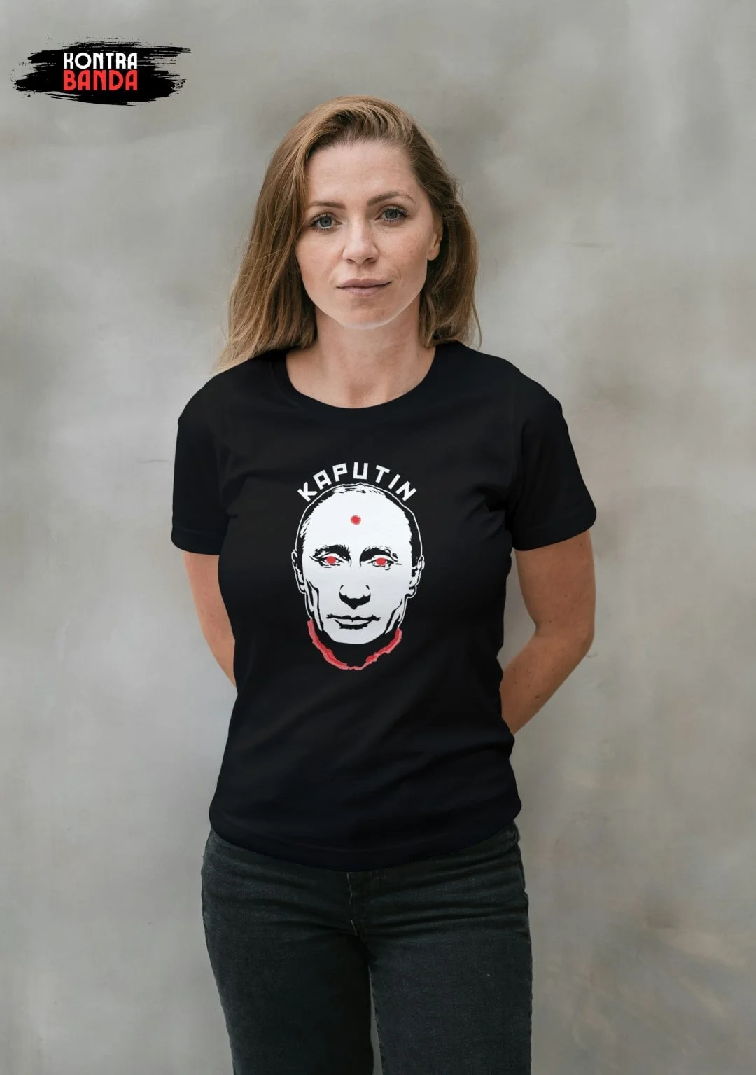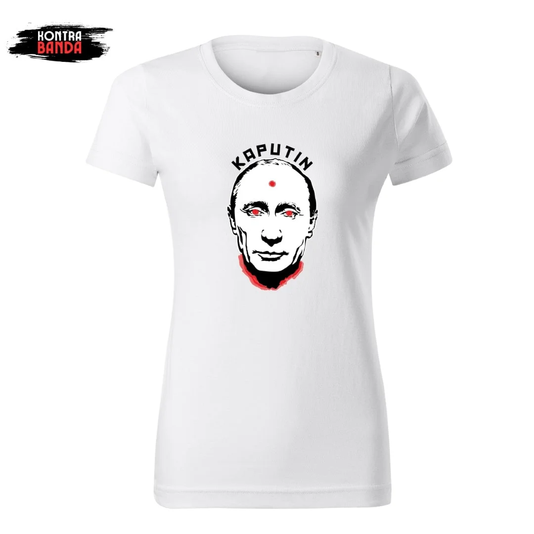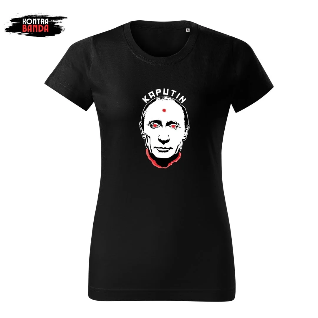 Koszulka T-shirt z napisem KAPUTIN to gwarancja idealnego dopasowania i jakości. Jej noszenie jest przyjemnością. Dostępna jest w wersjach damskiej i męskiej. Damskie charakteryzują się kobiecym krojem. Męskie są idealne dla najbardziej wymagających panów.