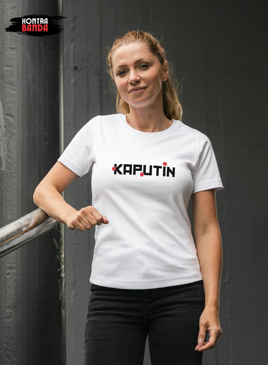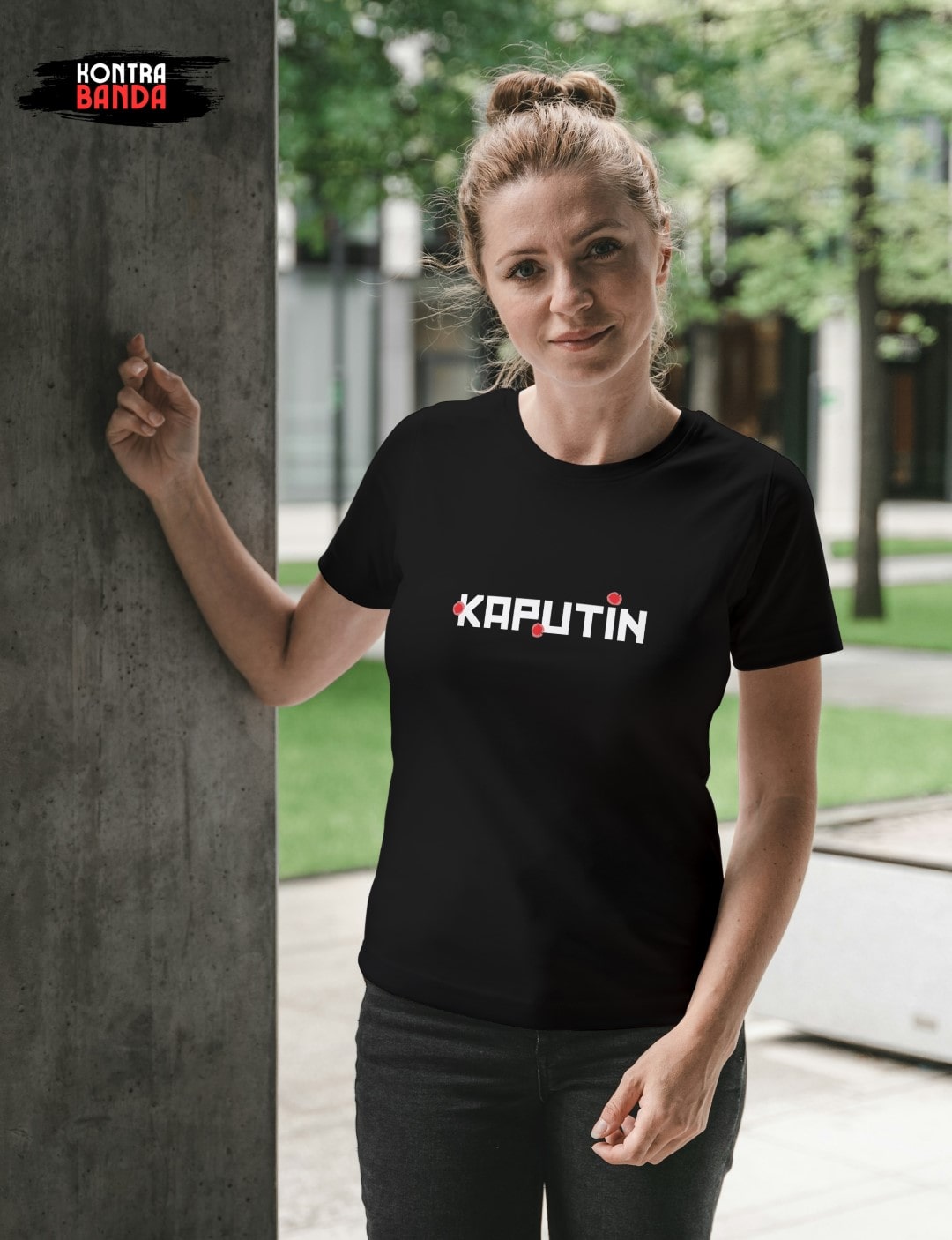 Koszulka T-shirt z napisem KAPUTIN to gwarancja idealnego dopasowania i jakości. Jej noszenie jest przyjemnością. Dostępna jest w wersjach damskiej i męskiej. Damskie charakteryzują się kobiecym krojem. Męskie są idealne dla najbardziej wymagających panów.